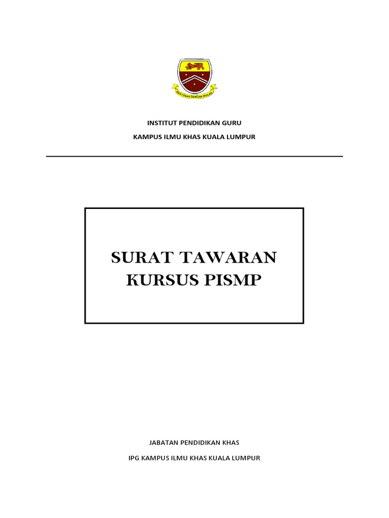 Surat Tawaran Kursus Pismp Institut Pendidikan Guru Kampus Ilmu Khas Kuala Lumpur
