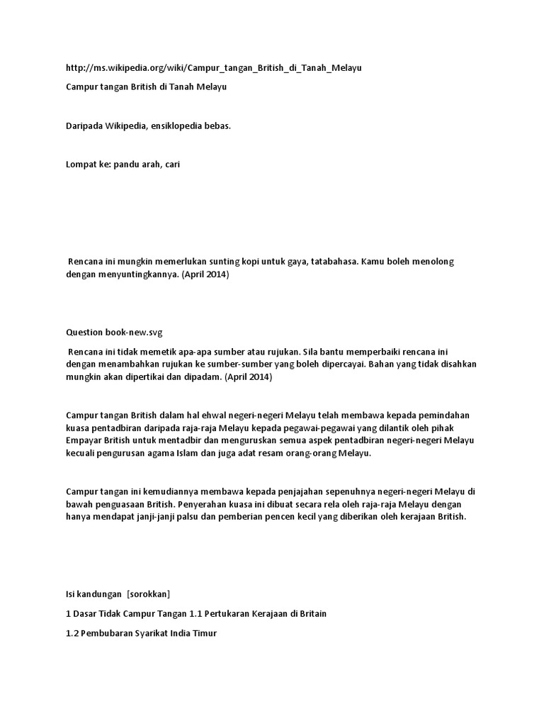 Kedatangan british ke tanah melayu raja raja melayu dan pembesar kehilangan. D Hak keistimewaan dan tanggungjawab raja sera pembesar. Persekutuan Tanah Melayu 1946 -1956 dan Kesannya kepada Kedudukan Politik Orang Melayu oleh RAMLAH ADAM PhD. Untuk menguasai perdagangan rempah yang dimonopoli oleh pedagang Islam.