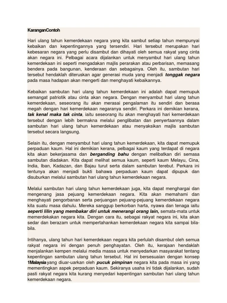 Hal ini kerana generasi muda hari ini mudah hanyut dan terikut-ikut dengan budaya Barat. Model karangan ulasan pt3. Kepentingan menyambut hari kemerdekaan tanah air kita merupakan salah sebuah negara yang kian pesat membangun di rantau asia.