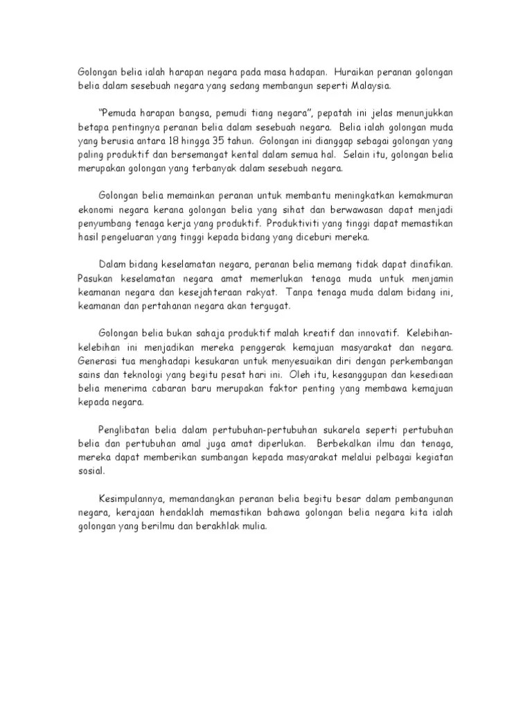 Contoh Karangan Spm Peranan Remaja Dalam Membangunkan Dan