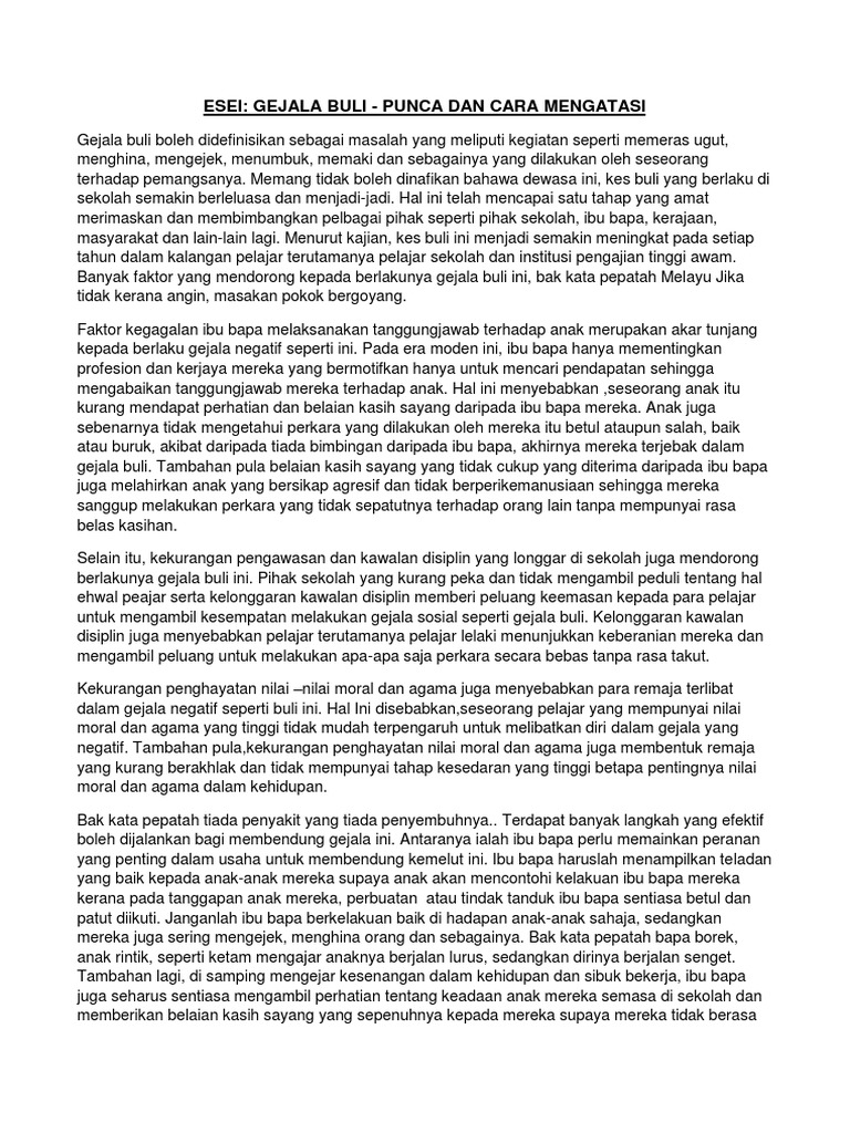 Karangan Langkah Mengatasi Gejala Buli Di Sekolah