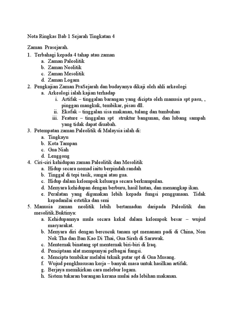 Nota Ringkas Bab 1 Sejarah Tingkatan 4