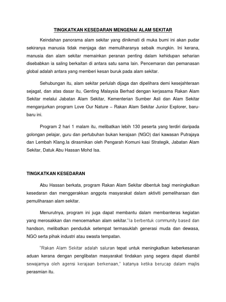 Penstrukturan semula ini melibatkan perubahan bidang tanggungjawab dimana Jemaah Pemasaran Lada Hitam JPLH dipindahkan daripada Kementerian Pertanian kepada KPPK manakala tanggungjawab berkaitan perhutanan mineral dan geosains dipindahkan ke Kementerian Sumber Asli dan Alam Sekitar. KETUA SETIAUSAHA KEMENTERIAN SUMBER ASLI DAN ALAM SEKITAR Assalamualaikum warahmatullahi wabarakatuh dan Salam 1Malaysia Persekitaran ICT pada hari ini menyaksikan ledakan transformasi yang berkembang dan berubah dengan begitu pesat. Pemeliharaan Dan Pemuliharaan Alam Sekitar Siapa Yang Bertanggungjawab Docx 1 0 Pengenalan Menurut Kamus Dewan Edisi Kedua Alam Membawa Maksud Dunia Course Hero.