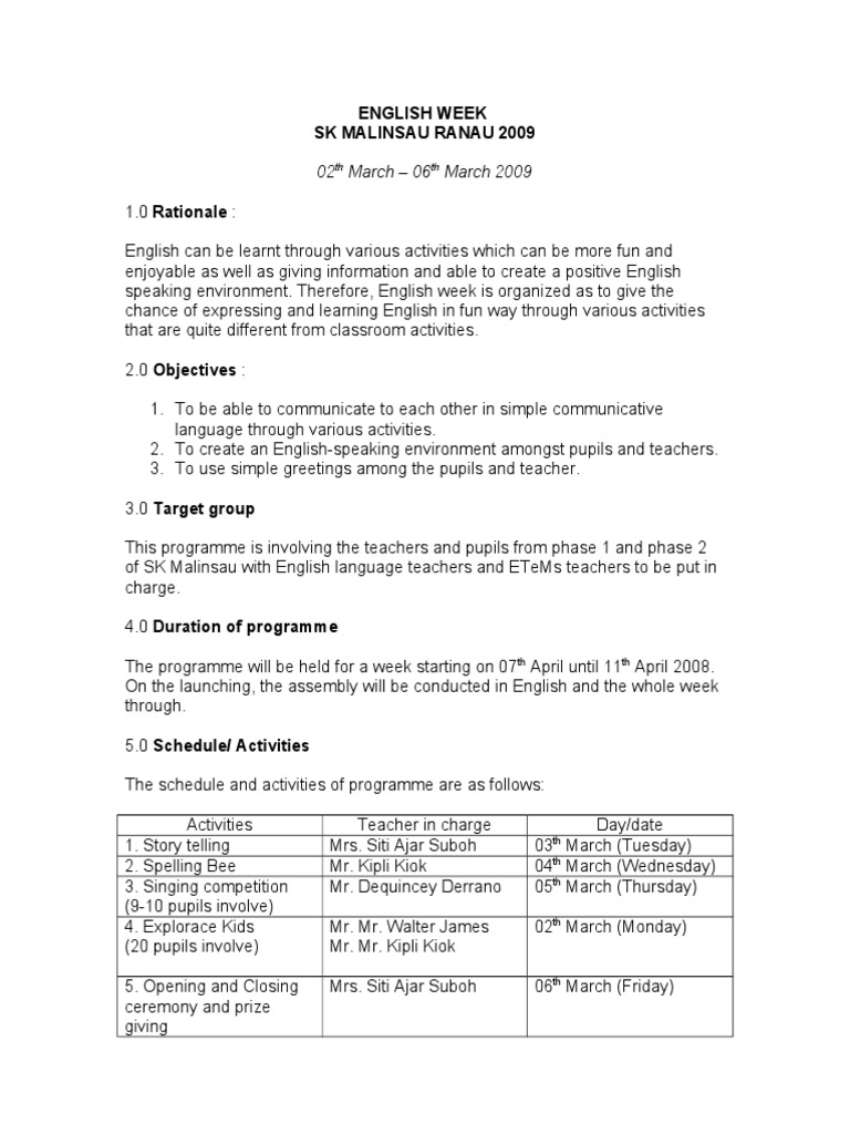 Doc Kertas Kerja English Week Setiap Aktiviti Blog Sktta2 Academia Edu