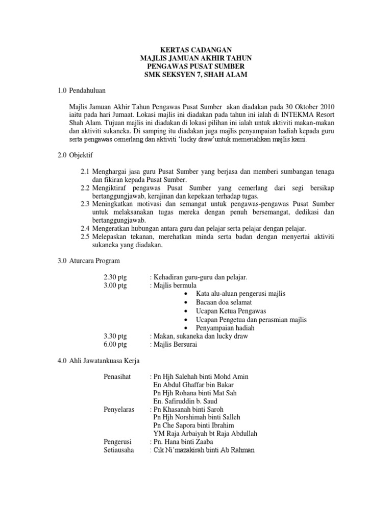 Doc 41637887 Kertas Kerja Jamuan Akhir Tahun Pss 2010 Nurul An Nur Academia Edu
