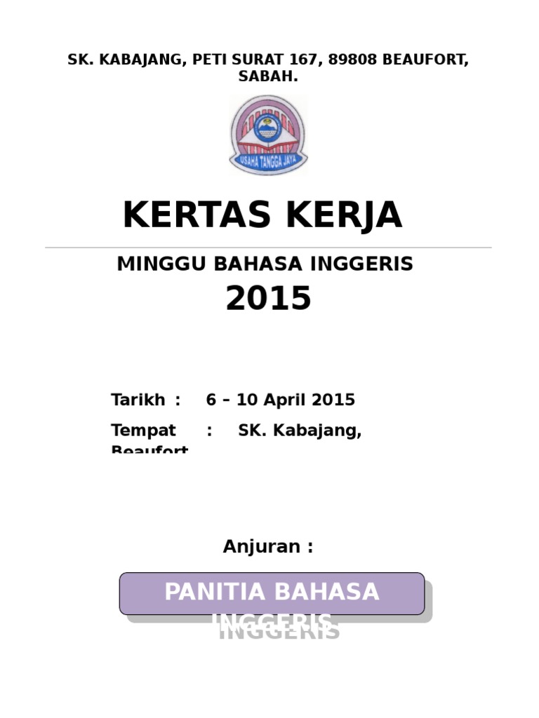 Kertas kerja minggu bahasa inggeris sekolah rendah. SMK TAN SRI JAAFAR ALBAR KERTAS KERJA PROGRAM BULAN BAHASA MELAYU TAHUN 2009 Objektif. Rasional Program yang dianjurkan oleh Panitia Bahasa Inggeris adalah salah satu platform untuk mewujudkan murid-murid yang berkeyakinan untuk berkomunikasi dalam Bahasa Inggeris. Berikut merupakan link-link untuk download kertas kerja bagi program sekolah.