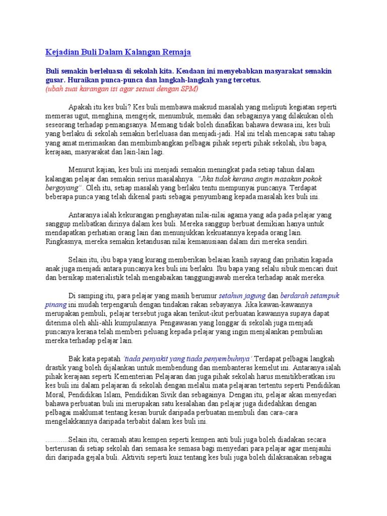 Karangan Langkah Mengatasi Gejala Buli Di Sekolah