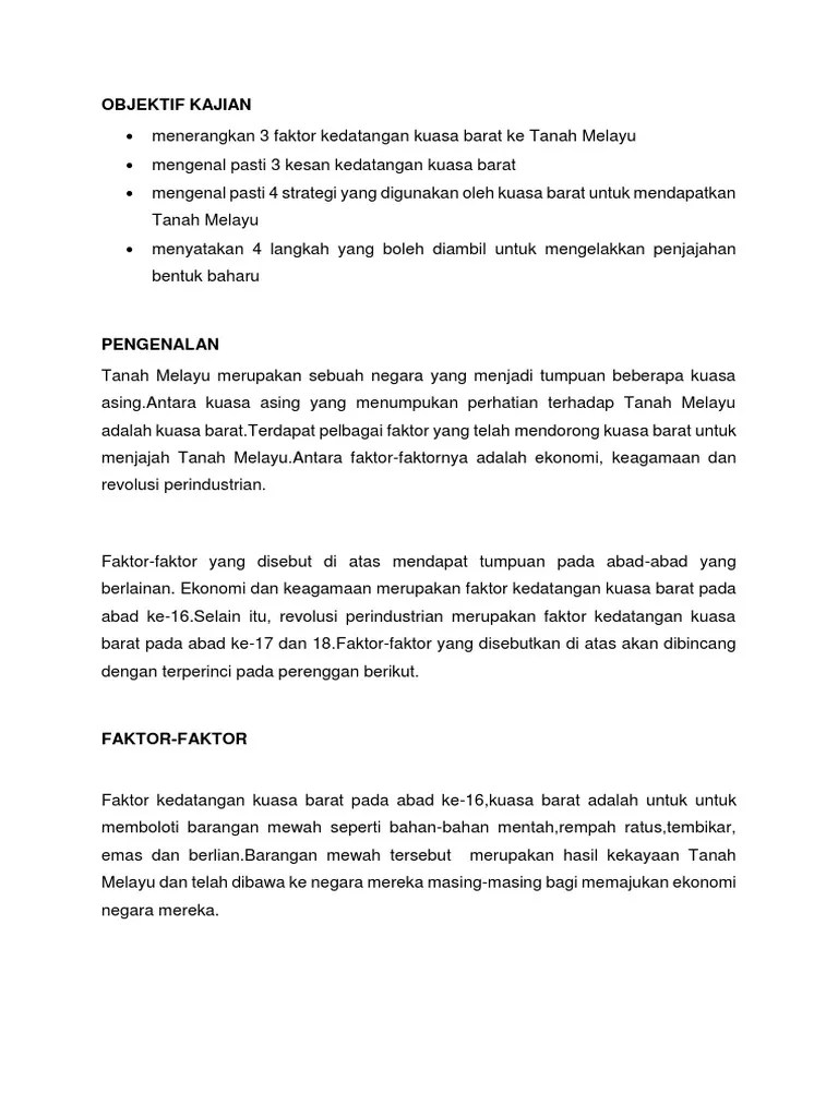 Kesimpulan Kedatangan Kuasa Barat Ke Tanah Melayu