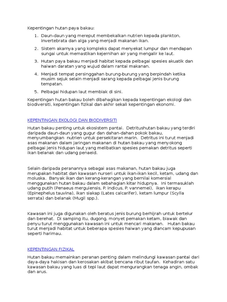 Mempunyai tanah berlumpur serta bersifat malar hijau sepanjang tahun paya bakau merupakan antara ekosistem yang penting bagi kawasan pinggir pantai. Berikut disenaraikan hubungan kepentingan antara hutan paya bakau dengan manusia- Hutan paya bakau adalah sempadan antara daratan dan lautan. Karangan kepentingan mematuhi peraturan sekolah spm karangan masalah sosial dalam kalangan remaja spm karangan pendek gejala vandalisme dalam kalangan remaja karangan kerjaya impian saya spm karangan membaca jambatan ilmu pt3 karangan kepentingan perpaduan kaum di malaysia karangan kepentingan ilmu.